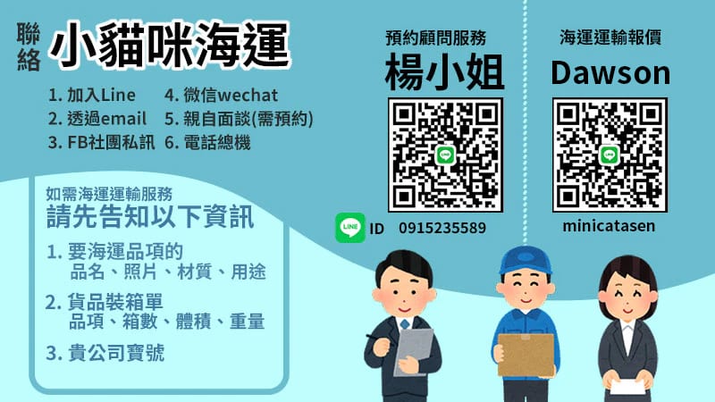 如果想委託我們海運,請聯絡Dawson。您可以先準備: