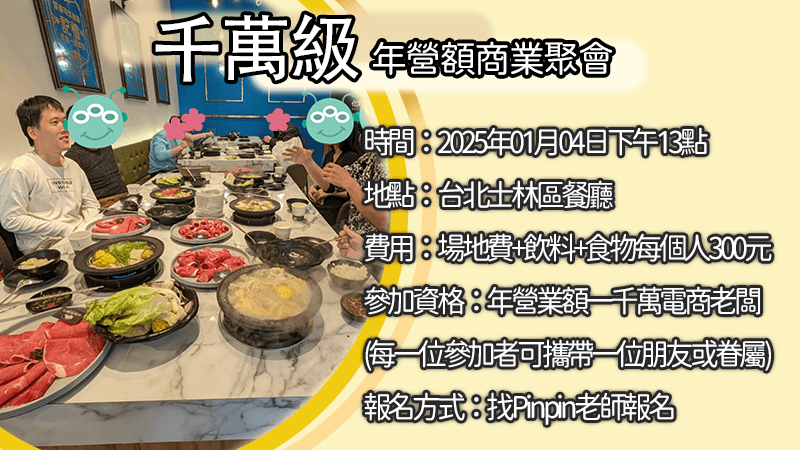 營業額千萬賣家的交流,認識同樣是商業界的高手,歡迎共襄盛舉!