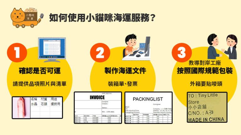 感謝您選擇小貓咪海運成為您的進貨夥伴!這裡是一步一步告知您如何委託小貓咪海運的教學頁面,只要照以下指示準備好所 … 閱讀全文 如何使用小貓咪海運的跨海進貨服務?